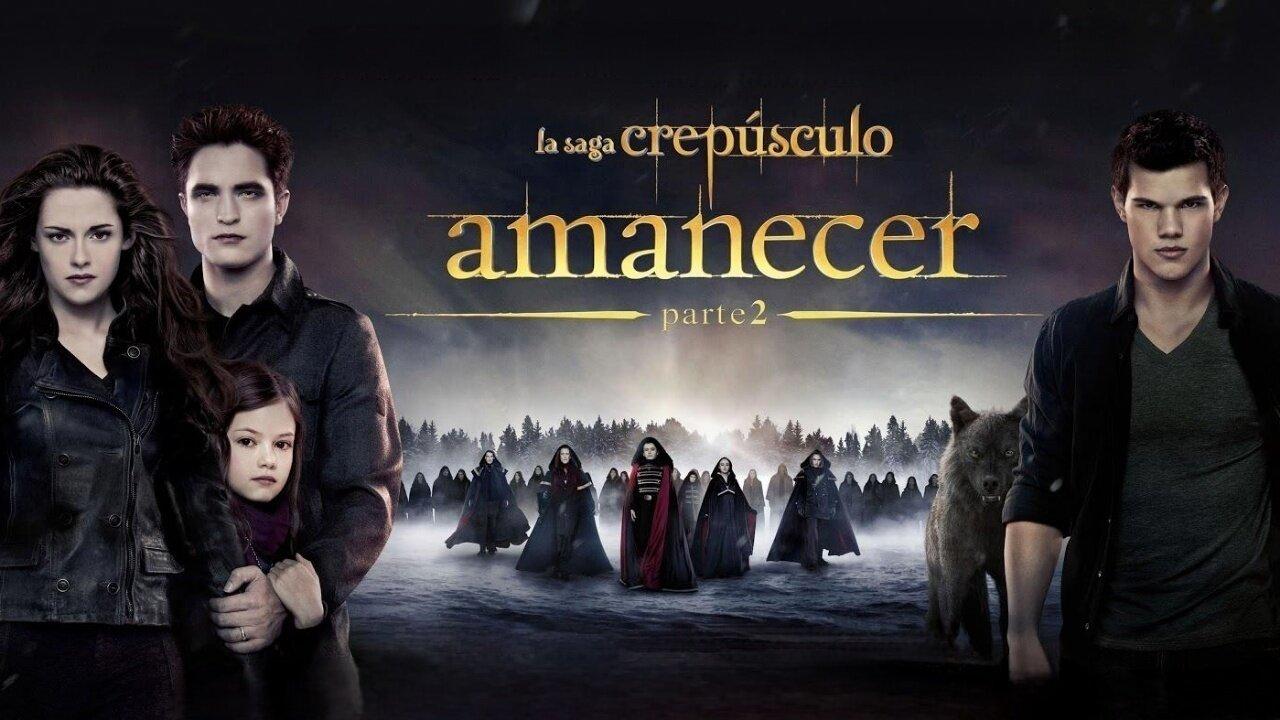 Sinopsis : Quinta y última pelicula de la saga Crepúsculo. Tras convertirse en vampiro, Bella debe adaptarse a su nueva naturaleza. Cuando nace Renesmee, la familia Cullen tendrá que protegerse de la amenaza de los Volturi, pues existe una ley que prohíbe transformar a los niños en vampiros, ya que son difíciles de controlar y pueden provocar desastres que pongan en peligro la secreta existencia de los vampiros. Segunda parte de "Amanecer" y quinta entrega de la franquicia cinematográfica Crepúsculo, basada en las novelas de Stephenie Meyer